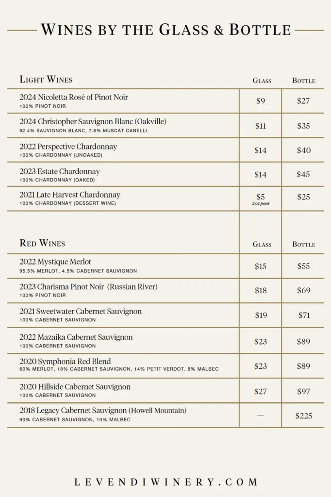 Levendi Tasting Room Menus Wine List